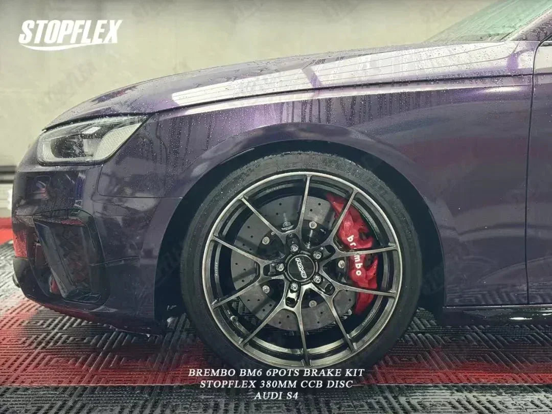 對於想要提升前端反應但又不想偏離原廠布局的車主來說,直接安裝StopFlex前碳陶瓷轉子套件是一個更專注的解決方案。它保留原廠卡鉗,專注於承擔大部分負荷的車軸,並解決S4車主最常抱怨的問題:前端沉重、反覆激烈制動時的衰退,以及持續的輪圈灰塵。